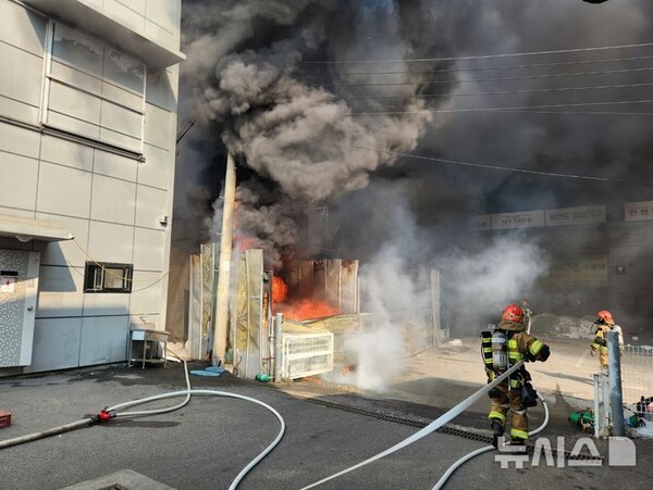 파주 가구제작 건물서 화재…대응 1단계, 진화 중